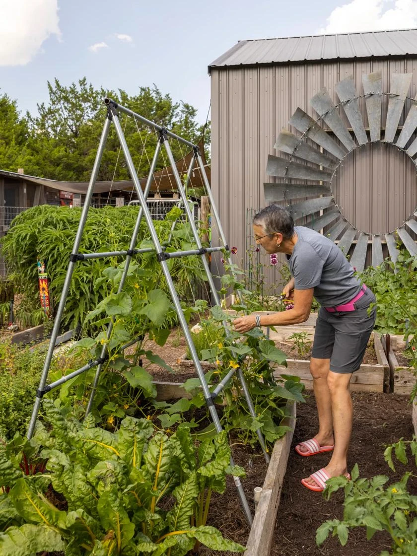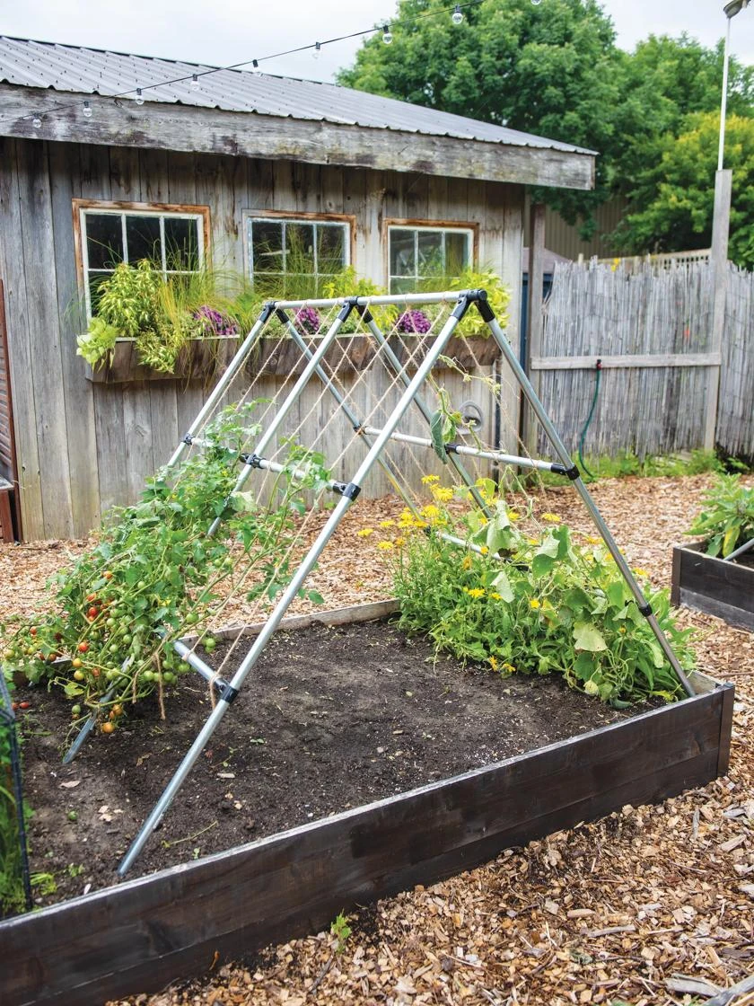 Follow our design plans with suggested pipe lengths for this A-Frame, or create your own unique structures. Build it tall enough so plants grow unhindered and you can tend underneath with ease. Add netting or twine for squash, cucumbers, peas and more. Note: Kit includes connectors only, conduit pipe not included.